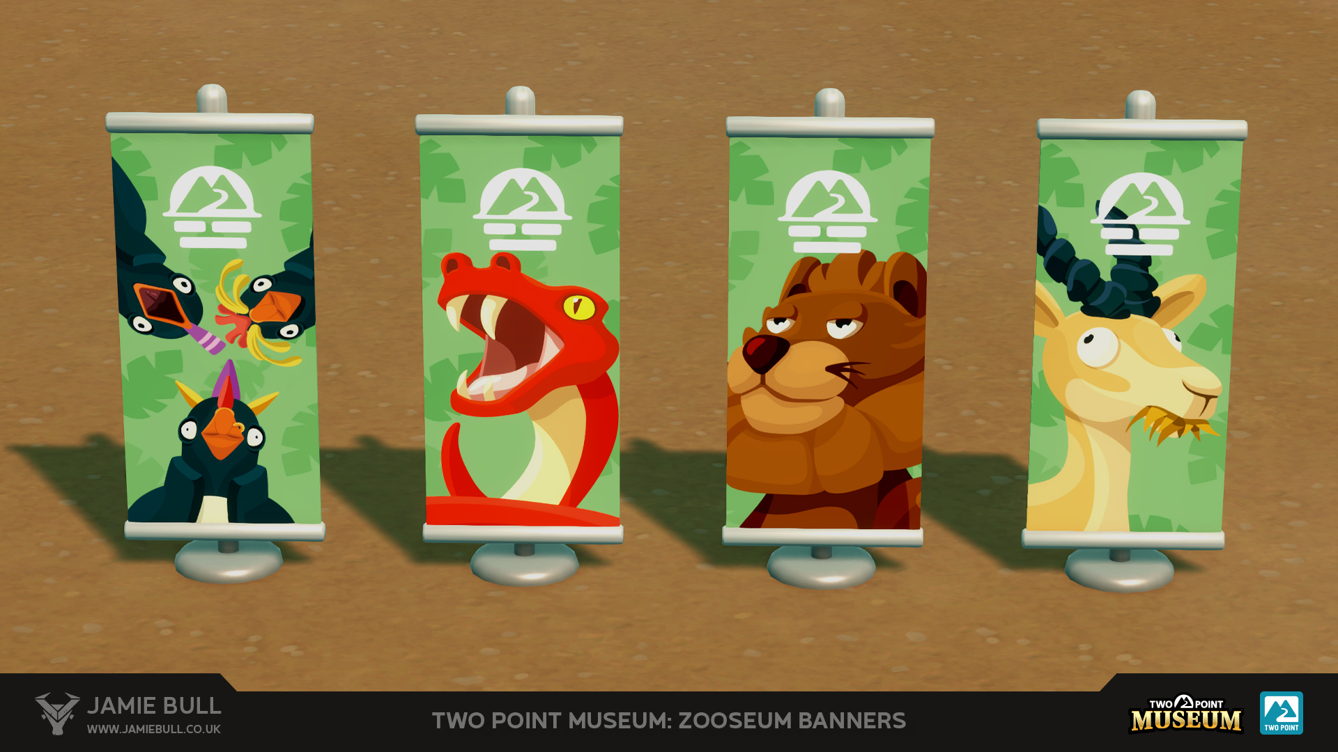 Some 2D assets created for the Zooseum DLC for Two Point Museum.